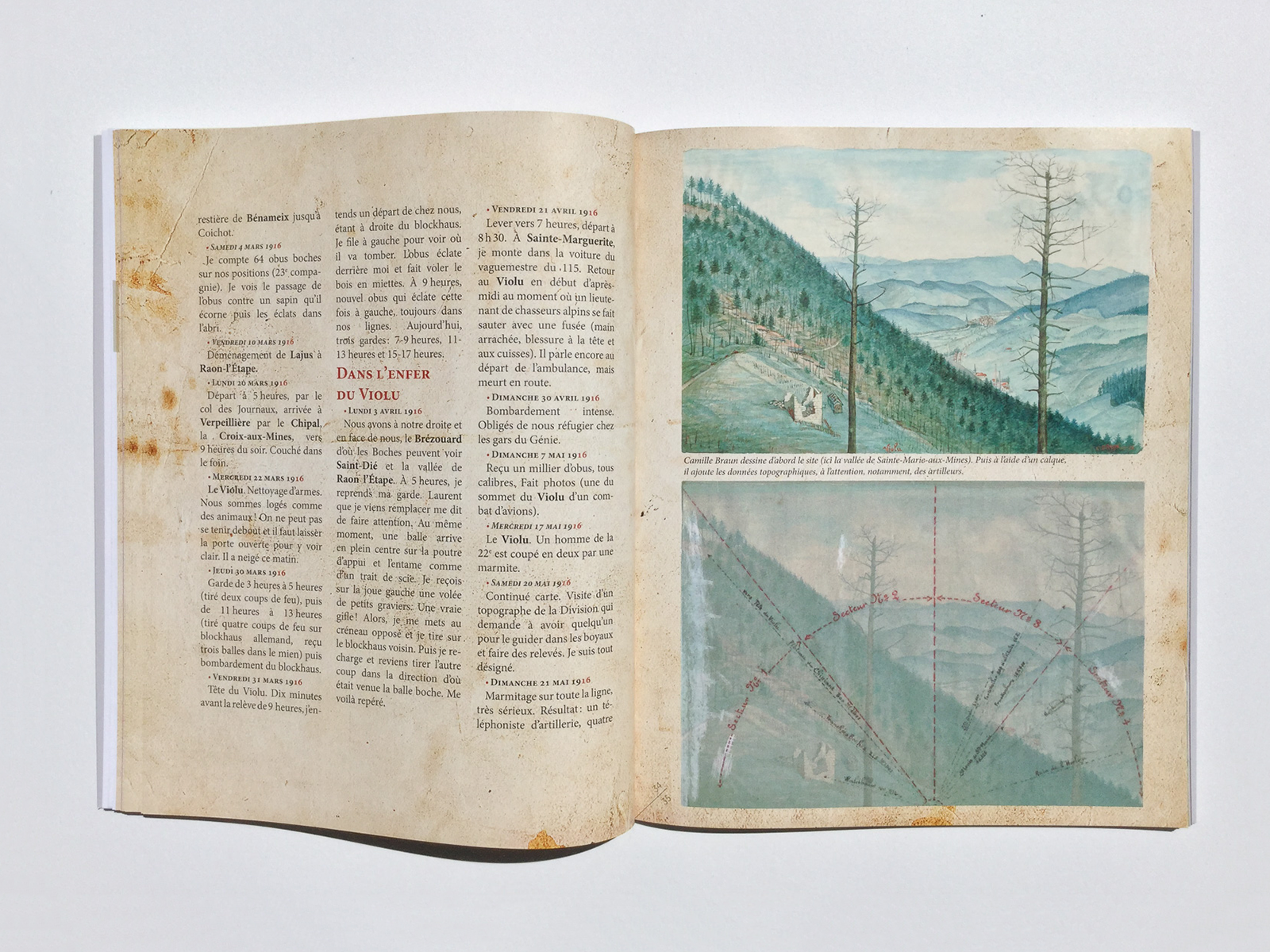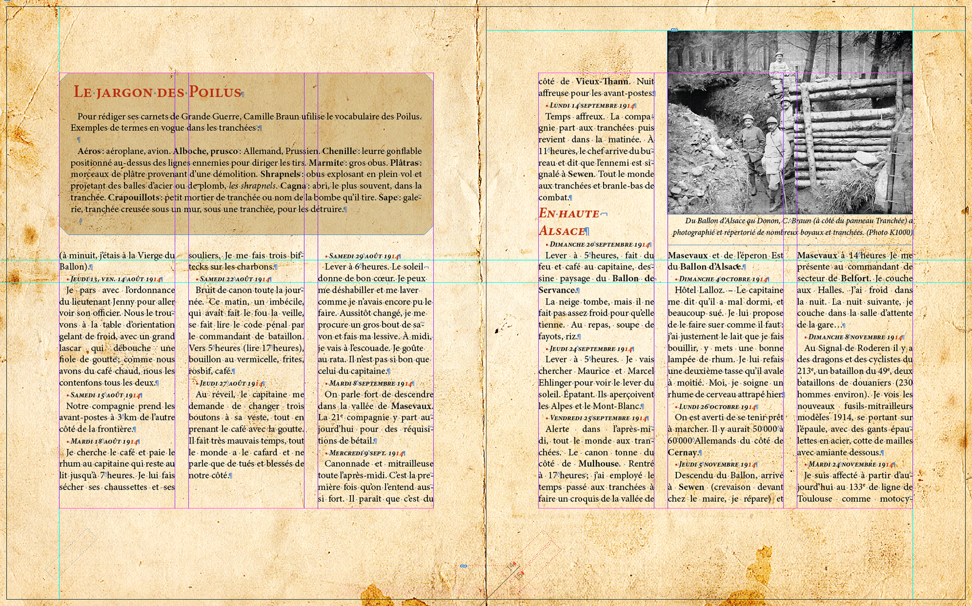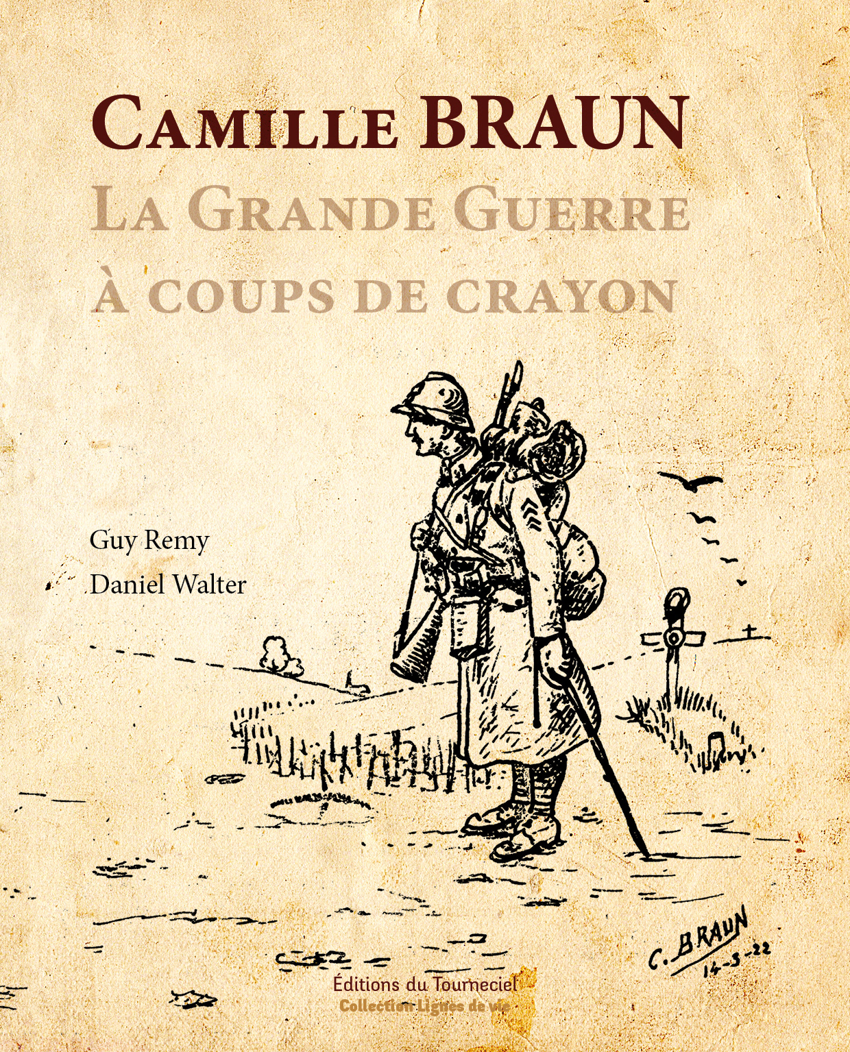 Réalisation de la maquette du livre Camille Braun - La Grande Guerre à coups de crayon pour les auteurs Guy Rémy et Daniel Walter.