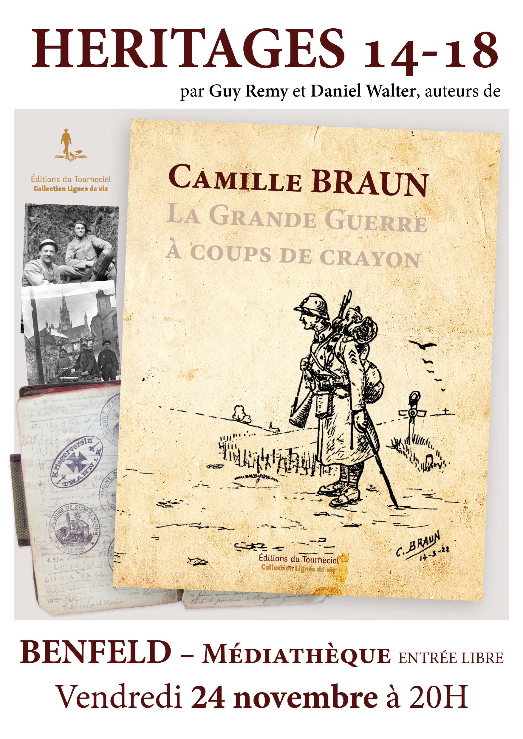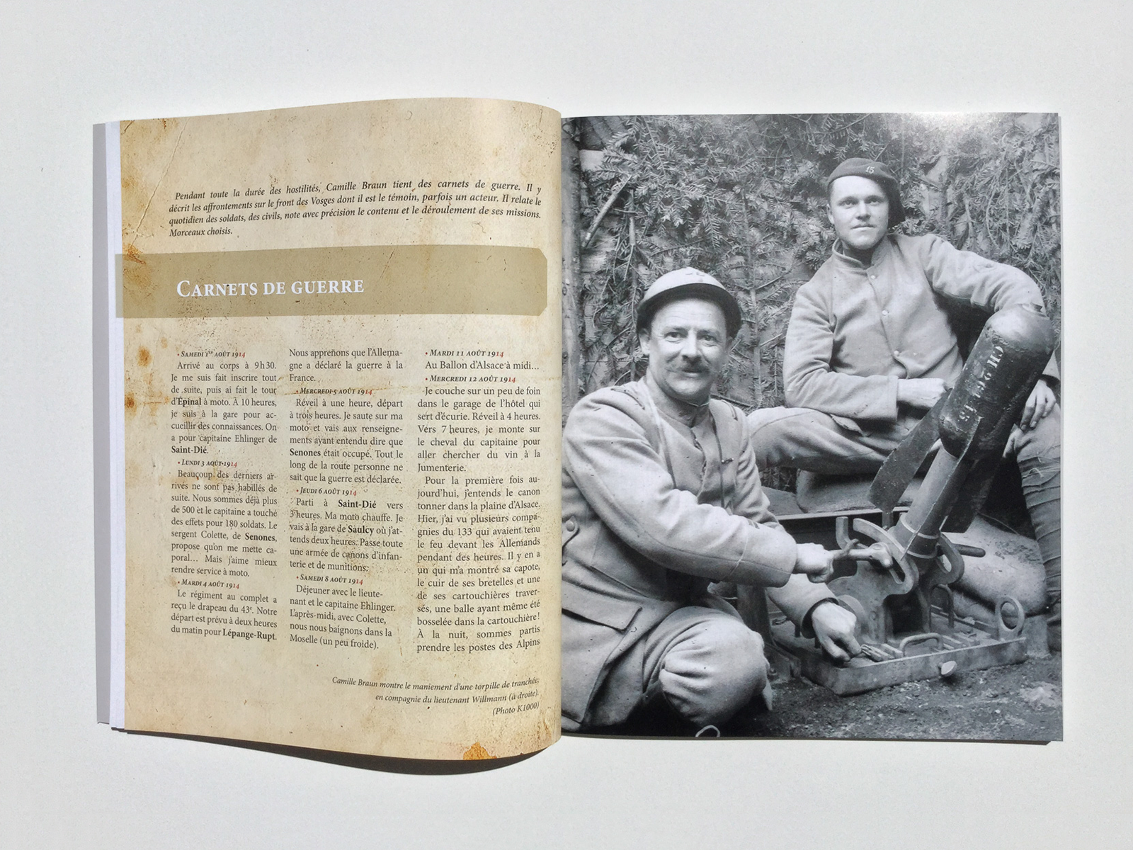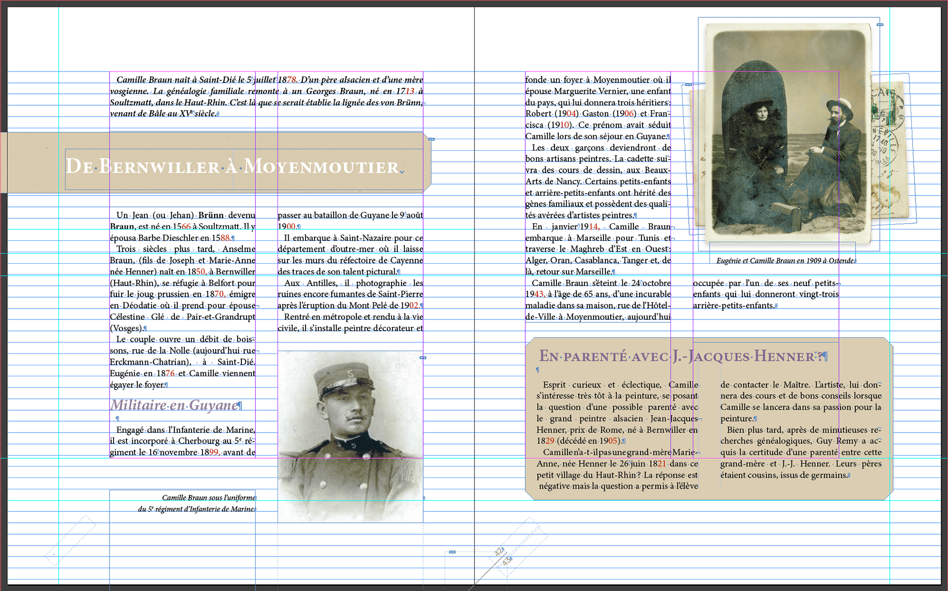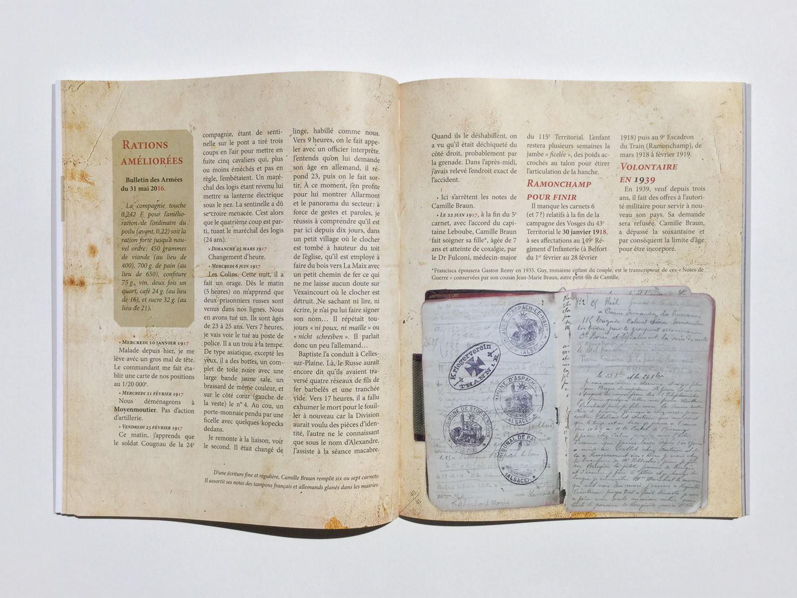 Réalisation de la maquette du livre Camille Braun - La Grande Guerre à coups de crayon pour les auteurs Guy Rémy et Daniel Walter.