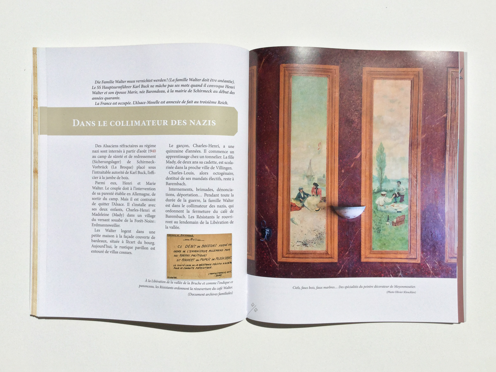 La mise en page laisse une grande place à la présentation des documents, des photographies, des peintures et des dessins originaux rassemblés pour la réalisation de l'ouvrage. Le choix a été fait pour un sommaire étoffé et plusieurs gabarits de page adapté aux différents contenus.