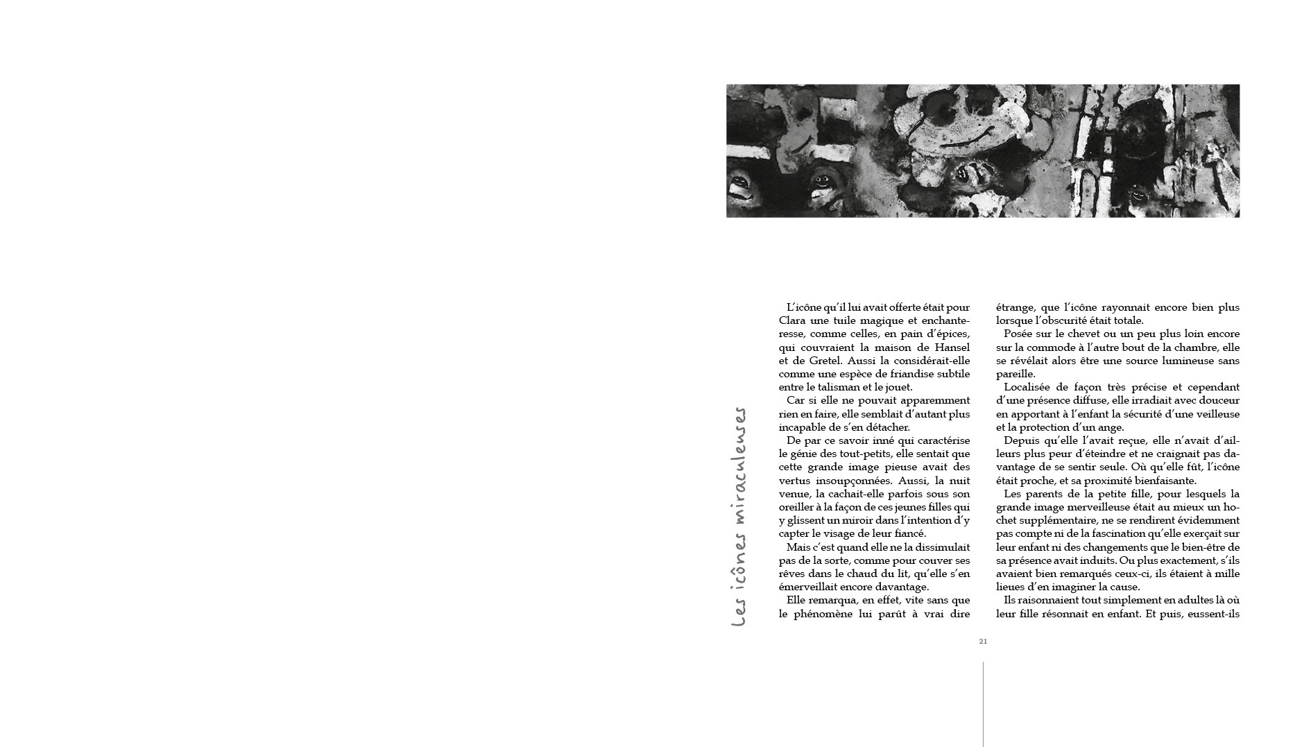 - La conception et la création de la maquette originale des pages et de la couverture du livre, incluant le principe narratif de l’ouvrage et l’organisation des chapitres,
