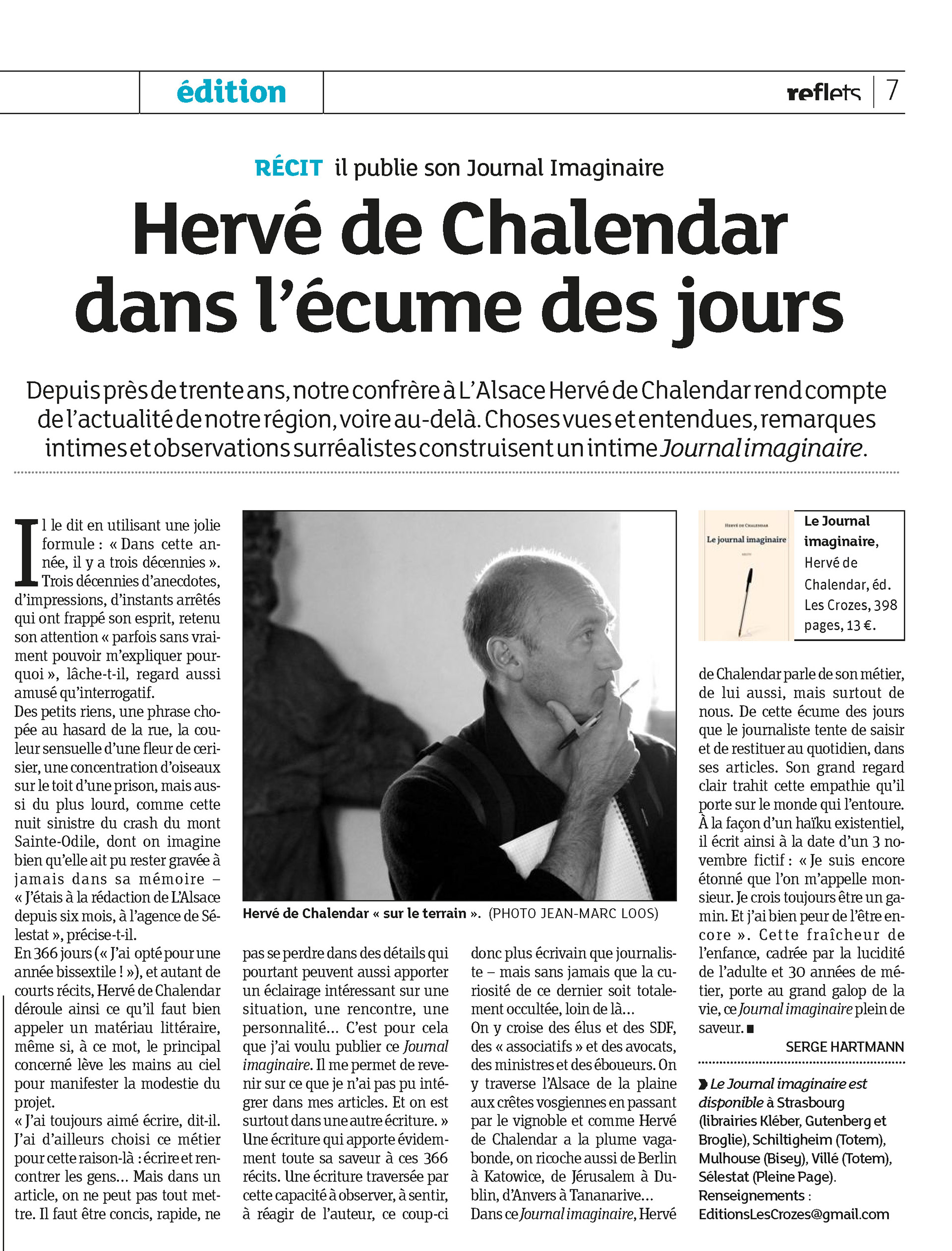 Et je reviens au plus important, c’est-à-dire au texte. Le journal imaginaire est un grand livre, plein d’humour et de gravité. Il y a l’Humanisme et il y a l’Humanité et c’est bien avec cette dernière que nous donne rendez-vous Hervé de Chalendar.